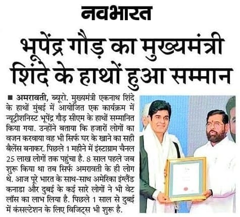 health and wellness, awarded personally by the Hon'ble Chief Minister of Maharashtra.